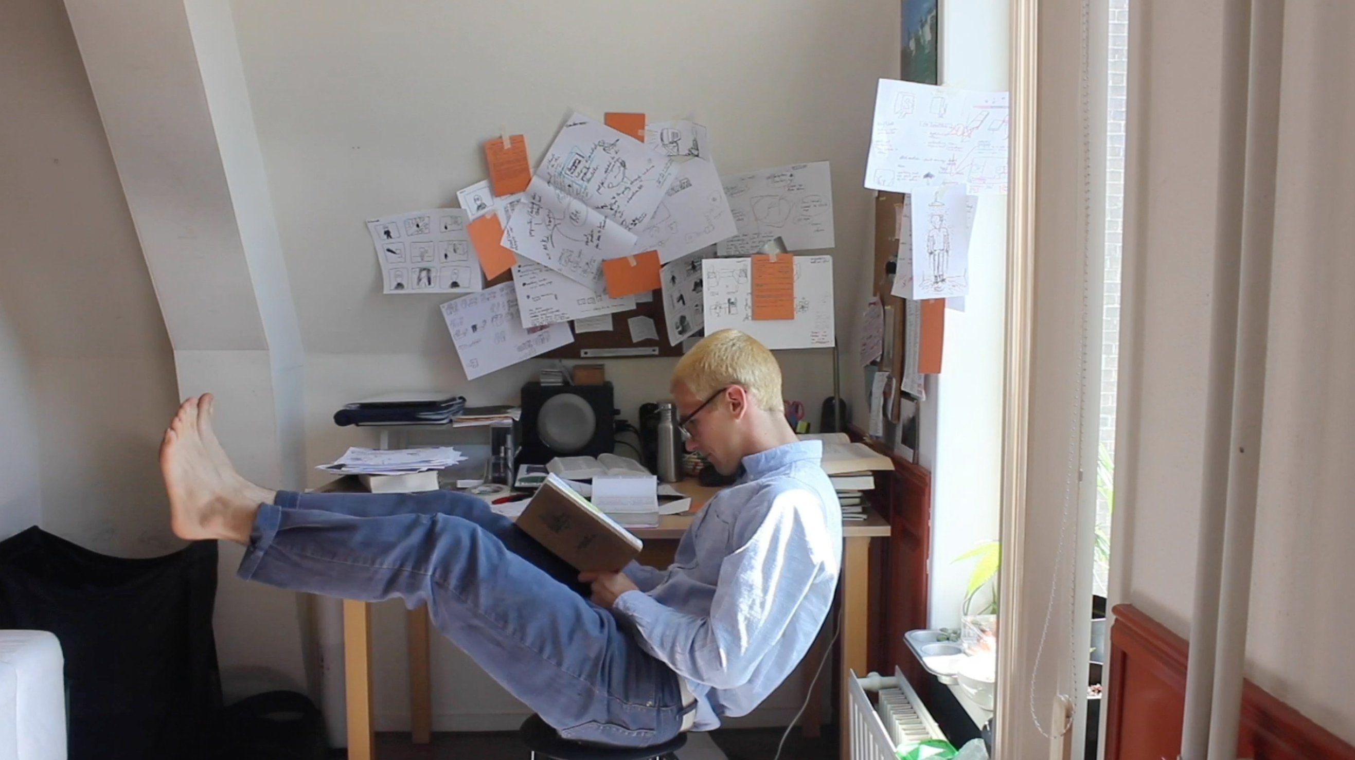 The installation invites the viewer to freely move and look at the moving images from different perspectives.